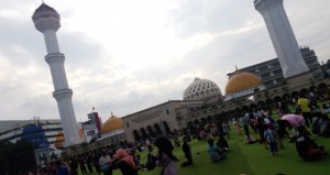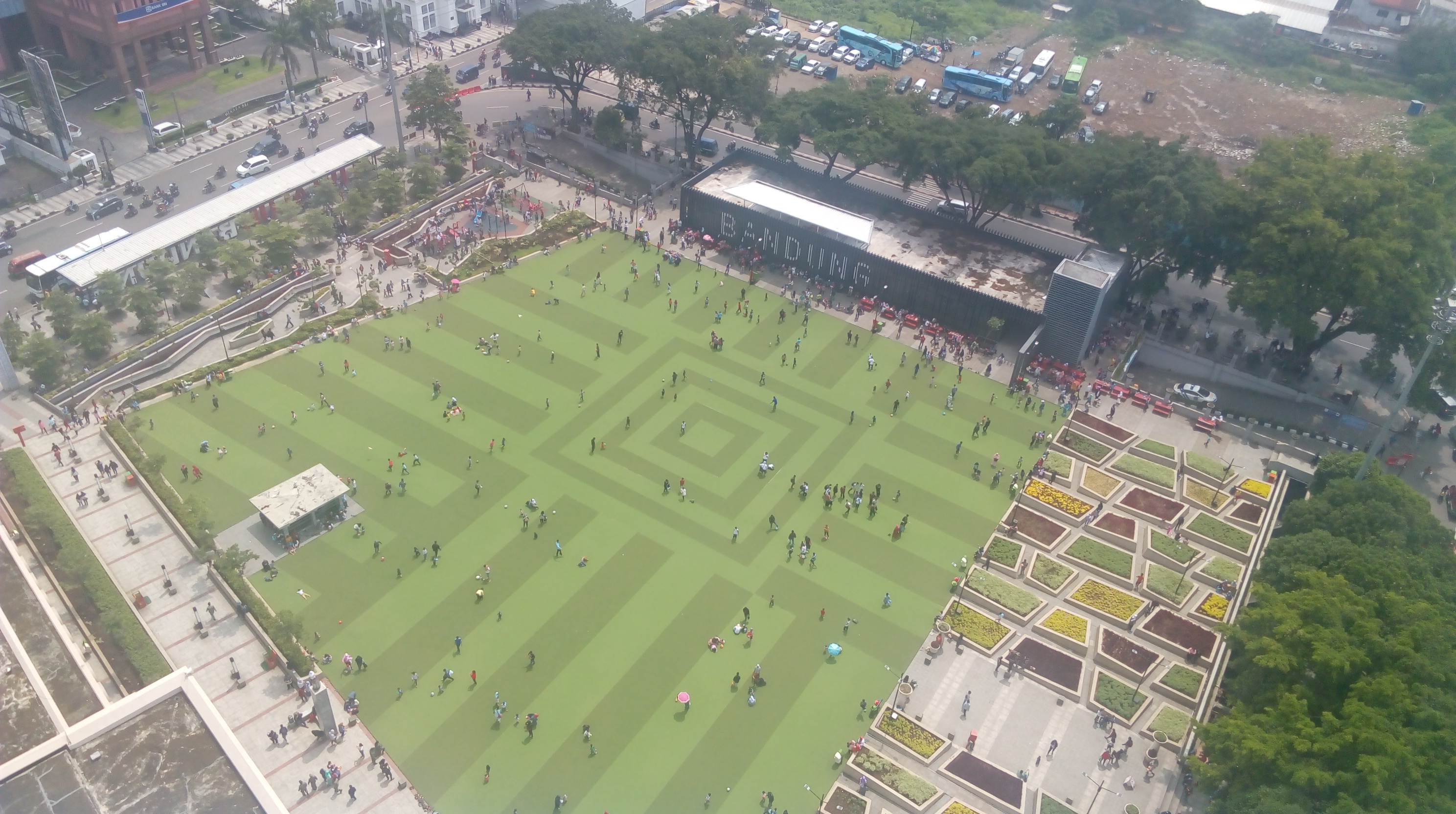 Kehangatan keluarga dalam kesederhanaan di Alun-alun Kota Bandung – Suatu hari menjelang senja, saya meluncur ke Alun-alun Kota Bandung dengan bantuan jasa Gojek. Jalanan Bandung hari itu cukup ramah dan tidak terlalu panas setelah beberapa saat diguyur gerimis. Belum pernah saya ke Alun-alun Kota Bandung setelah dipasangi rumput sintetis. Sungguh saya penasaran!!
