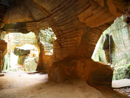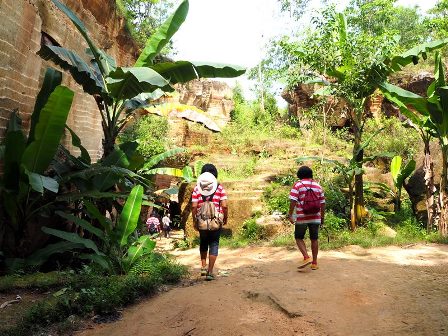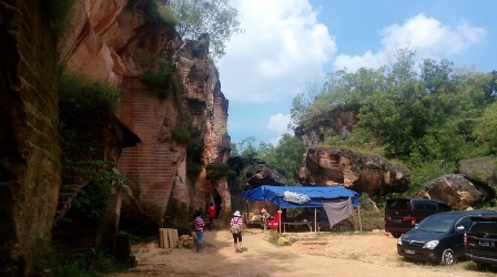 Segera kami kagum pada keindahan bukit kapur yang berwarna kecoklatan ini. Sangat berbeda dengan bukit kapur yang biasanya kami lihat karena umumnya bukit kapur berwarna putih. Bukit kapur ini telah ditambang oleh penambang lokal yaitu warga sekitar dan dijadikan bahan bangunan yang dikirim ke banyak area di Pulau Madura. Pahatan di dinding bukit kapur ini, secara tidak sengaja, pada akhirnya menciptakan relief yang sangat menawan. Benar-benar cantik. Selain pahatan di dinding, para penambang mengeksplorasi bukit ini juga membentuk lorong dan lubang. Kita dapat masuk dan menjelajah ke dalam lorong dan lubang ini. Semakin dalam kita masuk, kita akan semakin berdecak kagum pada keindahannya.