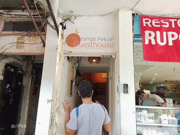 Beberapa orang kesulitan untuk menemukan lokasi Orange Pekoe Guesthouse ini. Mengapa? Karena memang lokasinya agak nyempil diantara ruko-ruko di Jalan Angsoka. Bangunan Orange Pekoe Guesthouse ini berwarna oranye seperti namanya. Pintu masuknya berupa pintu besi kecil dan tidak terlalu mencolok. Jika baru datang, kita harus membunyikan bel di tembok samping pintu. Selanjutnya tamu akan mendapatkan kunci akses masuk.