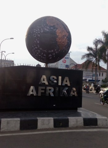 Monumen dengan bola dunia diatas tembok yang bertuliskan seluruh negara peserta Konferensi Asia Afrika ini akan lebih nampak indah pada malam hari karena akan ada lampu dan air mancur di sekelilingnya.