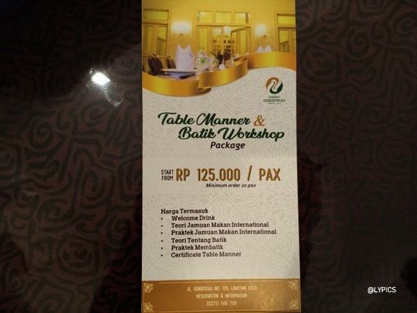 Nah, jika Anda dan kolega kantor atau rombongan wisata lain ingin belajar membatik saat berada di Kota Solo; hanya Ndalem Gondosuli saja tempat yang tepat. Karena batik adalah darah dan urat nadi Ndalem Gondosuli!