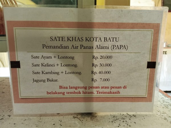 Harga Sate di Kawasan Air Panas Alami Songgoriti Batu