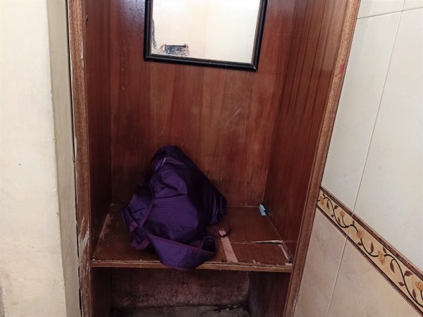 Rak untuk menyimpan tas dan baju di dalam kamar rendam