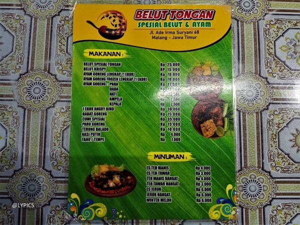 Belut Tongan nama tempat yang kali ini saya datangi. Benar, yang dijual adalah belut goreng dan Tongan adalah nama daerah dimana kedai ini beroperasi. Oh ya, daerah Tongan ini nama jalan resminya adalah Jalan Ade Irma Suryani. Tempat ini dekat dengan Sate Kambing Bang Saleh yang terkenal di Kota Malang.