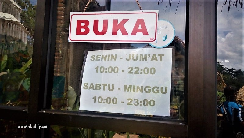 Kali ini saya dan teman-teman mengambil arah dari JoyoGrand dan sampai ke lokasi Warung De Sawah di jam makan siang. Oh ya, Warung De Sawah di Kecamatan Dau, Malang ini buka setiap hari mulai pukul 10:00 hingga pukul 22:00 bahkan lebih malam di akhir pekan yaitu hingga pukul 23:00.