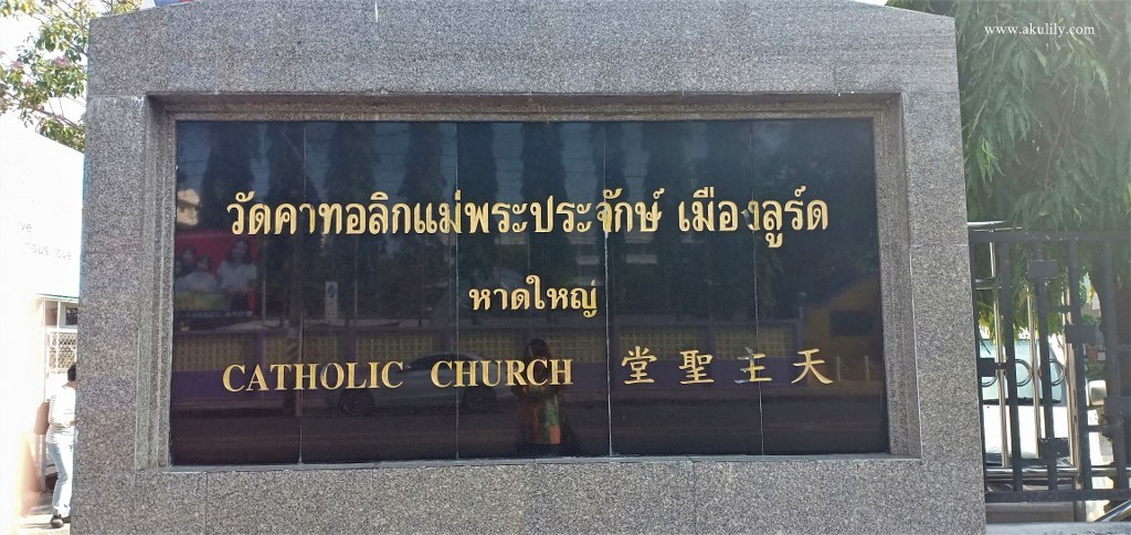 Iam ibadah Gereja Katolik Our Lady Of Lourdes Hat Yai – Sebagai umat Kristiani, saat berlibur ke kota atau negara lain, dan terdapat hari Minggu di dalam perjalanan saya dan beberapa teman; sering kali kami menyempatkan diri untuk dapat beribadah. Dalam liburan kami ke Hat Yai kali ini, saya sudah mencoba mencari gereja Kristen di sekitar tempat kami menginap. Tetapi setelah mencari informasi, yang terdekat adalah gereja Katolik. Karena salah satu rekan kami beragama Katolik, jadi kami putuskan untuk mengikuti ibadah di gereja Katolik saja.