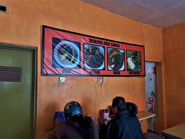 Nah, makan semangkuk kikil sapi Ario Samba pasti cocok dengan udara Kota Batu. Lokasi berjualannya di seberang Kantor Kelurahan Pesanggarahan, di Jalan Suropati Kota Wisata Batu. Tempatnya memang kecil tetapi pengunjungnya keluar masuk tidak berhenti.