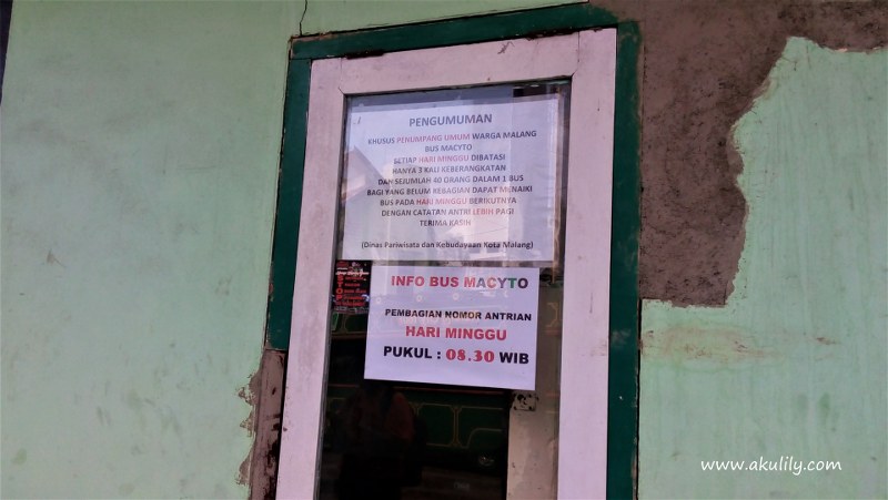 Setelah mencari informasi ke beberapa tempat, akhirnya saya dan teman menemukan dimana lokasi pemberangkatan MACYTO ini. Awalnya kami dan beberapa penumpang lain menunggu di dekat halte yang berada tepat di samping Balai Kota Malang. Tetapi setelah menunggu beberapa waktu, kami tahu kami salah.