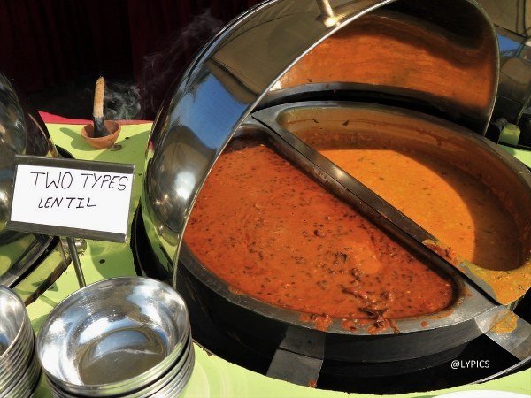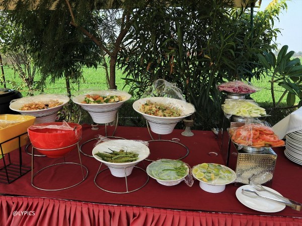 Makanan disajikan secara buffet. Jadi tamu dapat mengambil makanan yang diinginkan sebanyak yang mereka mau. Makan di The Lounge Mughal Garden Resort Agra Road India membuat persepsi saya tentang makanan India yang berasa kari. Ya memang mayoritas makanan memiliki rasa yang mirip dengan kari atau berbau bumbu kari. Karena memang masakan India kaya dengan rempah. Tetapi rasanya tidak seburuk yang saya bayangkan. Bahkan, saya menikmati makanan yang disajikan. Ternyata, enak!