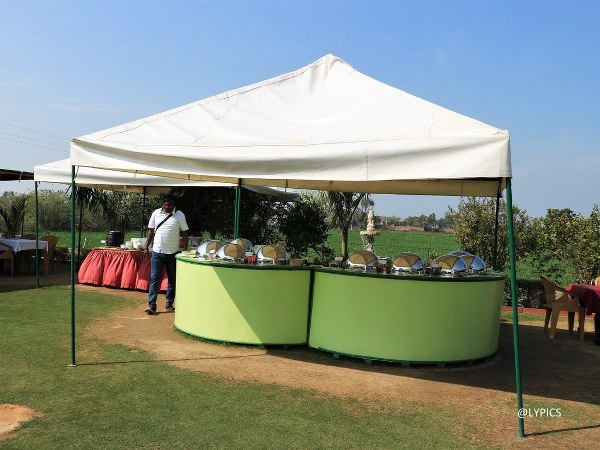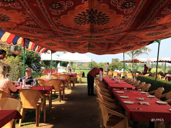 Restoran ini mengambil konsep terbuka, di udara terbuka. Area makan dan tempat makanan disajikan dinaungi tenda. Meja-meja di The Lounge ini bersih, tidak seperti kesan yang selama ini ada di pikiran saya bahwa India kotor. Mungkin karena saya datang di musim dingin maka debu tidak banyak beterbangan. Entah jika saya datang di musim panas.