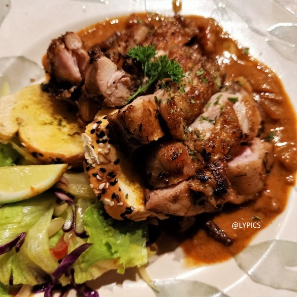 Beberapa tahun lalu, salah satu menu favorit saya di Cafe Calories ini adalah Steak Ayam dengan bumbu rendang. Sayangnya menu tersebut sudah tidak tersedia lagi. Jadi sekarang saya memilih ayam dengan saus tikka masala. Menu dengan cita rasa India ini enak, cocok di lidah saya. Sedangkan teman saya memilih laksa yang tidak kalah enaknya.