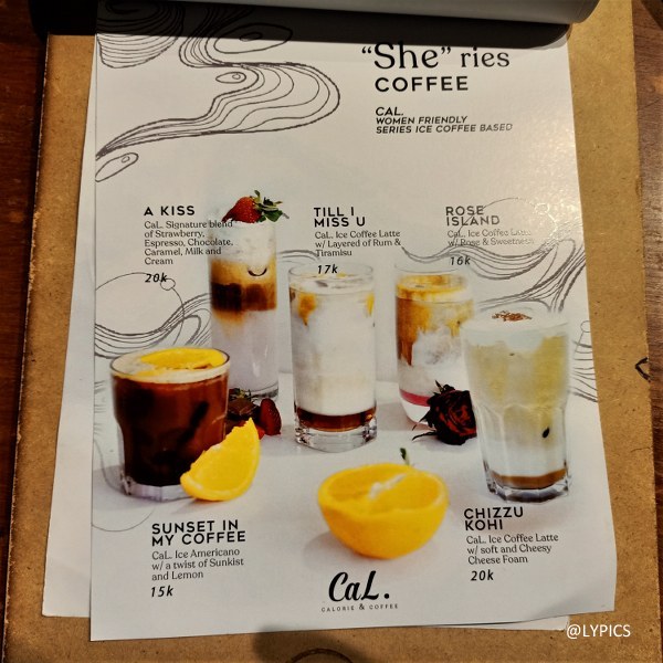 Melengkapi pesanan, kami memilih olahan kopi dari She Series. Kopi dengan jeruk sunkist dan lemon serta kopi dengan mawar. Ternyata keduanya memiliki rasa yang unik dan menyegarkan.