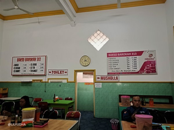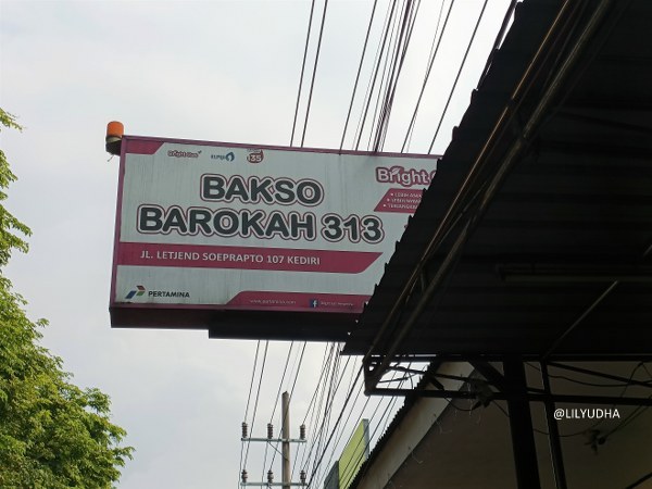 Berlokasi di Jalan Letjen Soeprapto 107, Banjaran, Kota Kediri, Kedai Bakso Barokah 313 ini buka setiap hari mulai dari jam 09:00 hingga 21:00. Karena penasaraan dengan salah satu kuliner Kediri ini, saya dan teman kantor datang ke kedai ini di jam makan siang. Hari itu, kedai ini tidak begitu ramai tetapi lumintu kata orang Jawa, yaitu pembeli datang dan pergi terus-menerus. Kami memesan bakso campur saja. Untuk minumnya, pengujung dapat memilih teh, jeruk, kelapa muda dan juga dawet.
