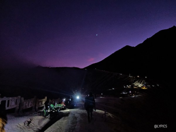 Berangkat dari Kota Banyuwangi sekitar tengah malam karena beberapa rekan ingin melihat blue fire. Perjalanan kami tempuh dalam waktu kurang lebih 1 (satu) jam dari Hotel Aston Banyuwangi sampai di Paltuding. Oh ya, jalan yang ditempuh menuju Paltuding berada di dua kabupaten yaitu Banyuwangi dan Bondowoso.