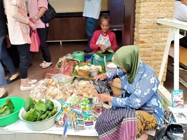 Setelah ibadah, ada beberapa penjual makanan di teras gereja. Rupanya enak karena banyak sekali pembelinya. Ada kue-kue hingga nasi liwet yang siap dibeli dan disantap. Beberapa jemaat langsung saja makan di tempat. Lain kali, saya harus mencicipi makanan di GKI Coyudan Solo.