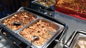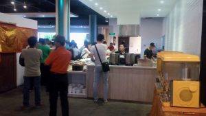 Ada tepanyaki di salah satu sisi ruangan, ada juga pokok steamboat dimana kita bisa memilih isian dari menu rebusan kita, ada juga menu tradisional seperti gado-gado, ada kare, opor, dan beberapa menu lain. Untuk minuman, tersedia air jeruk, teh dan air putih yang berada di pintu masuk gedung. Ada juga pojok makanan penutup dan buah yang juga dapat dinikmati sepuasnya