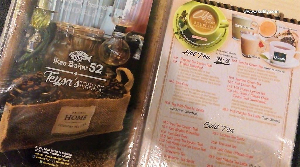 Namun jika Anda adalah salah satu dari penikmat kopi setelah makan, ada satu tempat yang dapat Anda datangi khususnya jika Anda menikmati makan Anda di Ikan Bakar 52 di Jalan K.H. Agus Salim Kota Malang. Tempat ini bernama Teysa’s Terrace, yang terletak tepat di lantai 2 (dua) Resto Ikan Bakar 52.