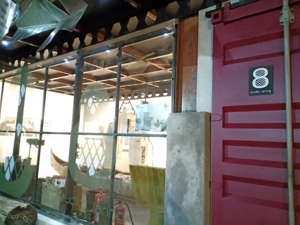 Artinya kami harus datang lagi! Sambil menunggu pesanan disiapkan, kami mampir ke galeri yang berada sehalaman dengan warung kopi. Nama galeri ini adalah Studio Jaring. Petang itu, ada beberapa lukisan menarik yang dipamerkan. Selain itu, pengunjung juga dapat membeli pernak-pernik di galeri ini.