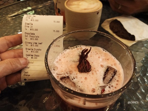 Teh Rosella, coklat panas dan latte menjadi pilihan kami. Ditambah cireng, brownies dan cookies. Harga makanan dan minuman yang kami pilih berkisar antara Rp. 15,000 per porsinya. Oh ya, harga makanan di Caffe Traffice.OR ini berkisar antara Rp. 8.000 hingga Rp. 20.000. Sedangkan harga minumannya berkisar antara Rp. 6.000 hingga Rp. 20.000 (harga Februari 2021).