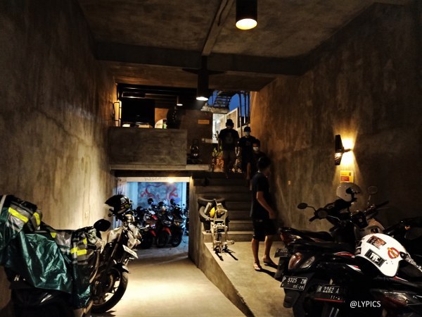 Bangunan Cafe Traffic.OR ini dari depan sekilas hanya seperti ruko dua lantai yang belum selesai dibangun.Ternyata setelah saya masuk ke gedung ini, saya terpesona. Setelah melewati parkir motor di bagian depan, saya menemukan ternyata bangunan Cafe Traffic.OR ini terdiri dari beberapa lantai dan unik.