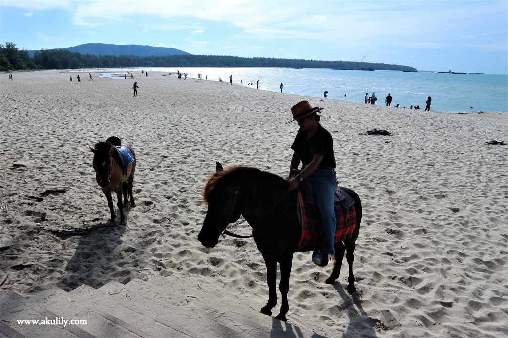 Hal lain yang dapat dilakukan di Pantai Samila di Hat Yai Thailand yang bersih dan indah ini adalah berkuda. Kita dapat naik kuda poni yang memang ditawarkan untuk dinaiki. Berapa biayanya, saya kurang tahu karena saya tidak tertarik untuk naik kuda di sore itu. Di tepi pantai, anak-anak berlari di atas pasir dan sebagian lain berenang di pantai. Menyenangkan!