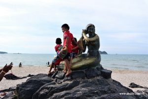 Semua pengunjung Pantai Samila di Hat Yai Thailand yang bersih dan indah ini dipastikan akan mengabadikan gambar dirinya di patung putri duyung yang dibangun pada tahun 1666 oleh Chan Karnjanakpan, sang walikota Songkhla di jaman itu. Perancang patung ini adalah Jit Buabus, seorang mantan direktur sekolah scooter di Bangkok.