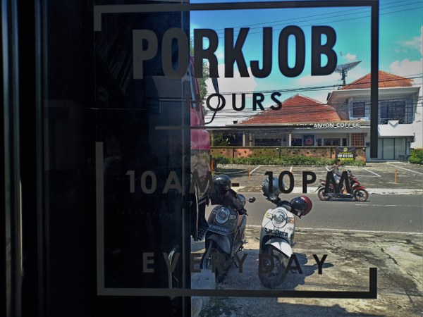 Jadi, daripada semakin penasaran segera saya meluncur ke Pork Job. Restoran yang menyajikan olahan daging babi ini terletak di Jalan Bondowoso. Lokasi yang strategis dan mudah ditemukan. Pork Job terletak tepat di samping pusat kebugaran Calossa. Berjalan kaki saja dari Universitas Widya Karya.