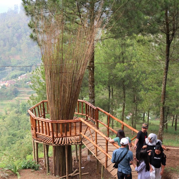 Salah satu spot paling laris untuk dijadikan latar belakang berfoto adalah sebuah bangunan berbentuk kapal layar. Jika Anda tidak takut ketinggian, spot ini adalah spot cantik dan menarik untuk berfoto. Antrian di spot ini cukup panjang, jadi sabar saja. Bagi pecinta alam, nikmatilah keindahan kawasan ini dari atas. Sungguh menyenangkan !